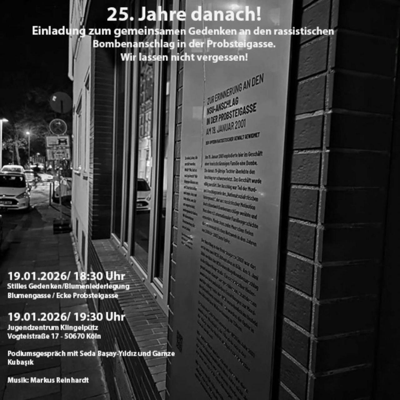 Einladung zum gemeinsamen Gedenken an den rassistischen Bombenanschlag in der Probsteigasse.