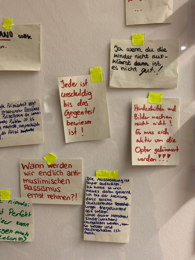 Über 2.000 Schülerinnen und Schüler sowie Studenten zahlreicher Universitäten aus ganz Deutschland, Polizeischüler*innen der Hochschule für Polizei NRW, Wissenschaftler*innen aus dem Ausland, Unternehmen und Einzelpersonen haben die Ausstellung gesehen, mit Betroffenen gesprochen, diskutiert. Zu Gast war im Dezember 2025 auch Josefine Paul, die damalige NRW-Ministerin für Kinder, Jugend, Familie, Gleichstellung, Flucht und Integration. Sie besuchte zusammen mit der Kölner Bürgermeisterin Derya Karadag und anderen engagierten PolitikerInnen der Parteien SPD, Die Grünen, Die Linke, FDP und Volt die Ausstellung am 7. November 2025 und sprach mit Betroffenen über deren Lebenssituation, mit Lehrer*innen über die Notwendigkeit von Bildungsmaterial für weiterführende Schulen zu den Themen NSU-Komplex, Rassismus und Diskriminierung im Alltag sowie mit der Kuratorin und Initiativenmitglieder*innen über die weiteren Perspektiven der Ausstellung als Erinnerungsort.