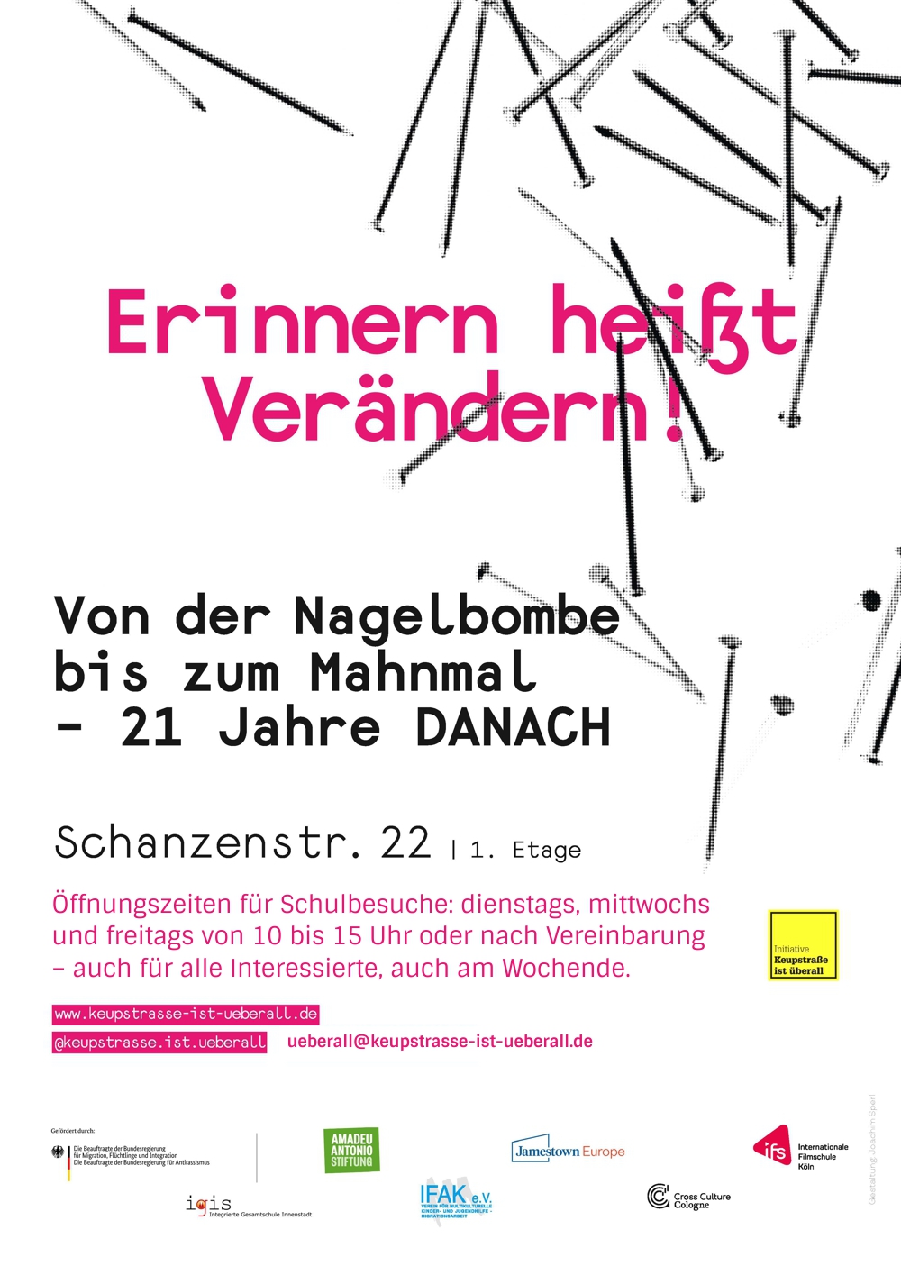 Am Nachmittag des 9. Juni 2004 explodierte in der Kölner Keupstraße eine mit 5 Kilogramm Sprengstoff und über 800 glühend heißen Nägeln befüllte Bombe des Nationalsozialistischen Untergrundes“ (NSU), die 22 Menschen teilweise schwer verletzte.